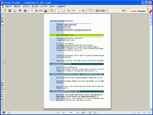 엑셀 2007 정식 버전에서는 엑셀 파일을 PDF나 XPS 파일로 저장하는 기능이 추가 기능으로 제공됩니다. 엑셀의 추가 기능으로 제공되는 것이므로 PDF 파일을 만들기 위해 Acrobat은 별도로 필요없다는 것을 의미합니다. 여담입니다만 원래 이 기능은 2007 Microsoft Office System에 기본으로 포함될 예정이었으나 모 회사(짐작하시는 그 회사가 맞을 겁니다. ^^)의 강한 반발로 추가 기능 plug-in 형태로 변경되었다고 합니다.